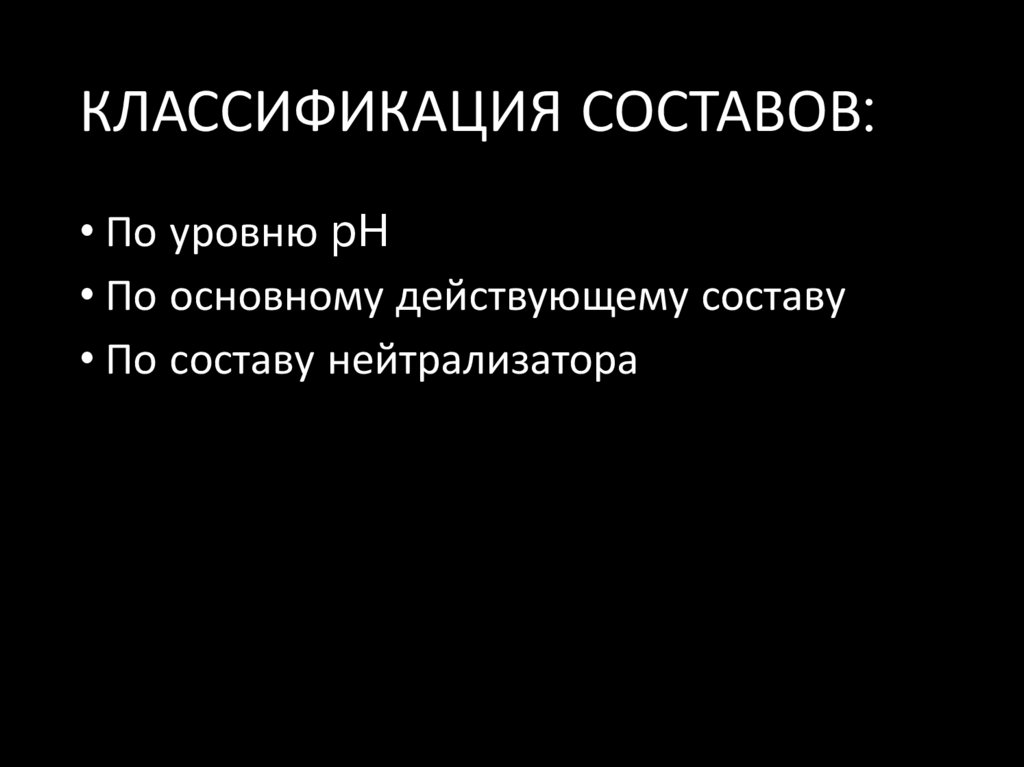 КЛАССИФИКАЦИЯ СОСТАВОВ:• По уровню pH