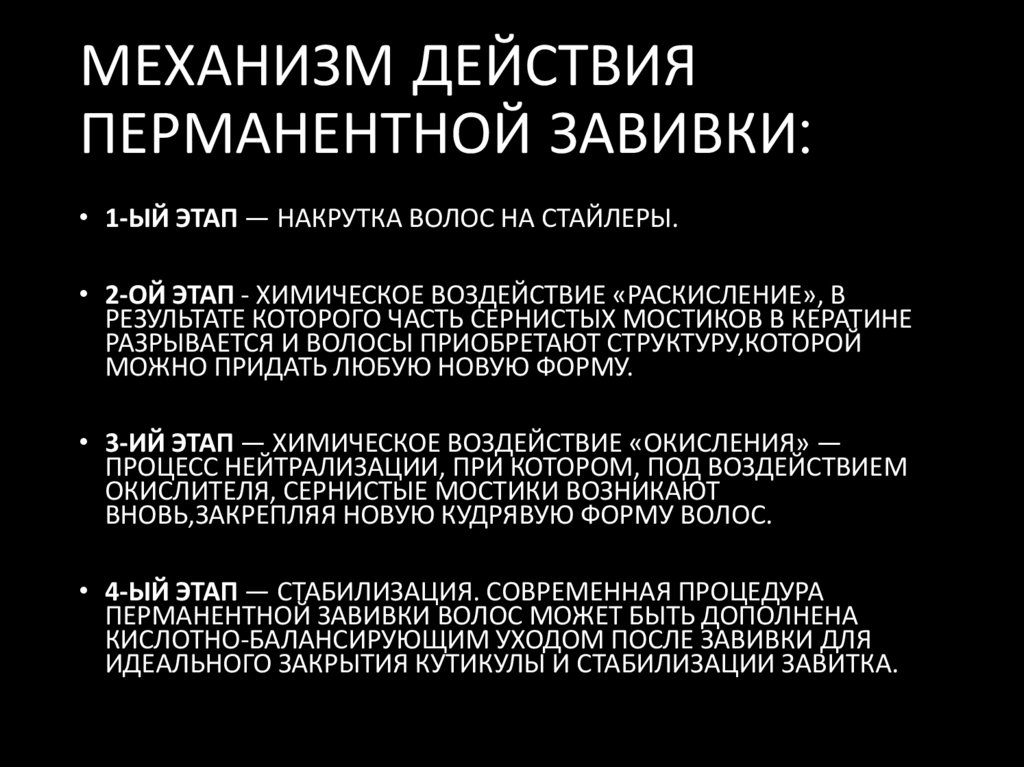 МЕХАНИЗМ ДЕЙСТВИЯПЕРМАНЕНТНОЙ ЗАВИВКИ: