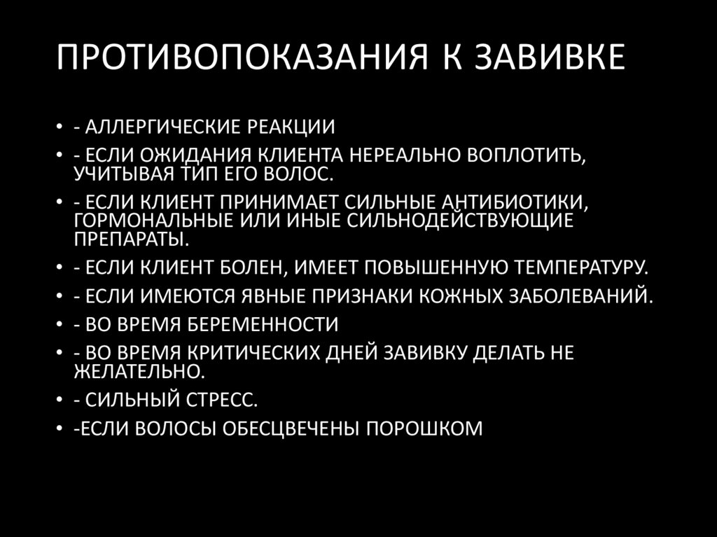 ПРОТИВОПОКАЗАНИЯ К ЗАВИВКЕ• - АЛЛЕРГИЧЕСКИЕ РЕАКЦИИ