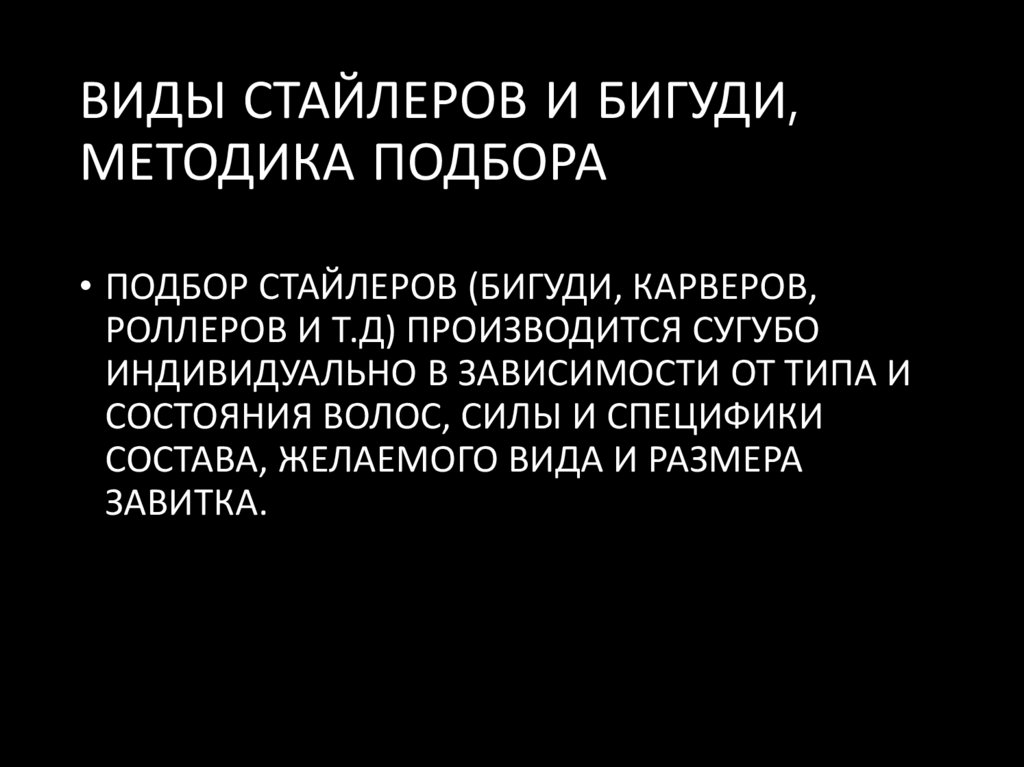 ВИДЫ СТАЙЛЕРОВ И БИГУДИ,МЕТОДИКА ПОДБОРА