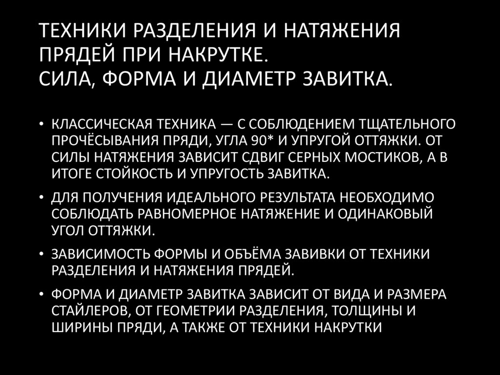 • ЗАВИСИМОСТЬ ФОРМЫ И ОБЪЁМА ЗАВИВКИ ОТ ТЕХНИКИ