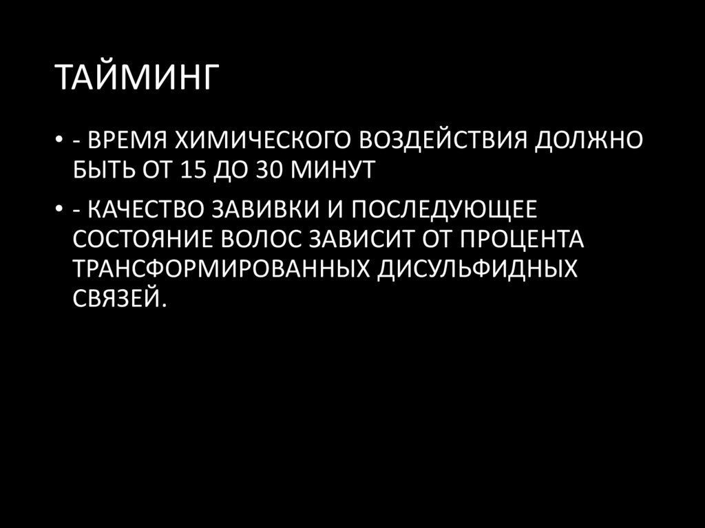 ТАЙМИНГ• - ВРЕМЯ ХИМИЧЕСКОГО ВОЗДЕЙСТВИЯ ДОЛЖНО