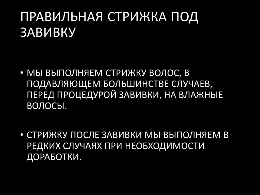 • СТРИЖКУ ПОСЛЕ ЗАВИВКИ МЫ ВЫПОЛНЯЕМ В
