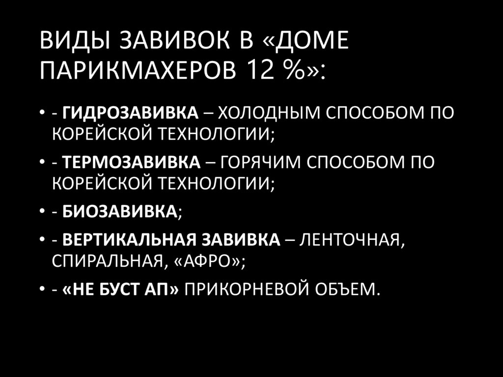 ВИДЫ ЗАВИВОК В «ДОМЕПАРИКМАХЕРОВ 12 %»:
