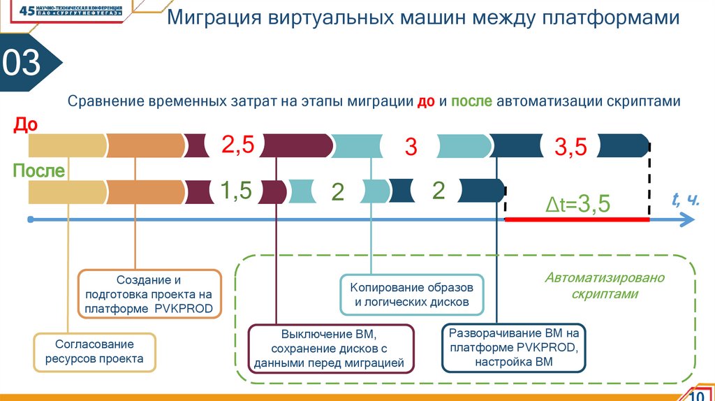 Сравнение временных затрат на этапы миграции до и после автоматизации скриптами