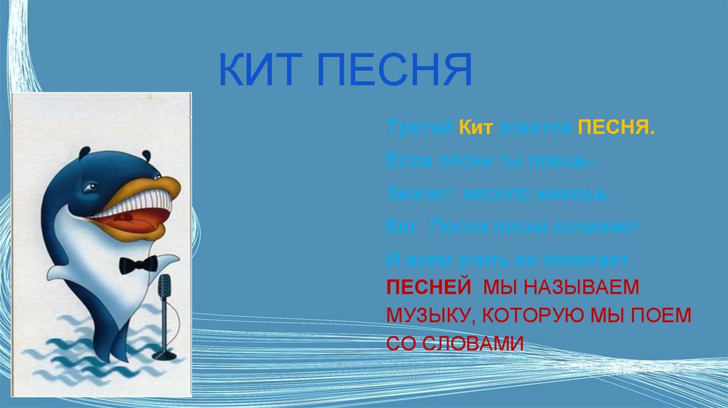 КИТ ПЕСНЯТретий Кит зовется ПЕСНЯ.