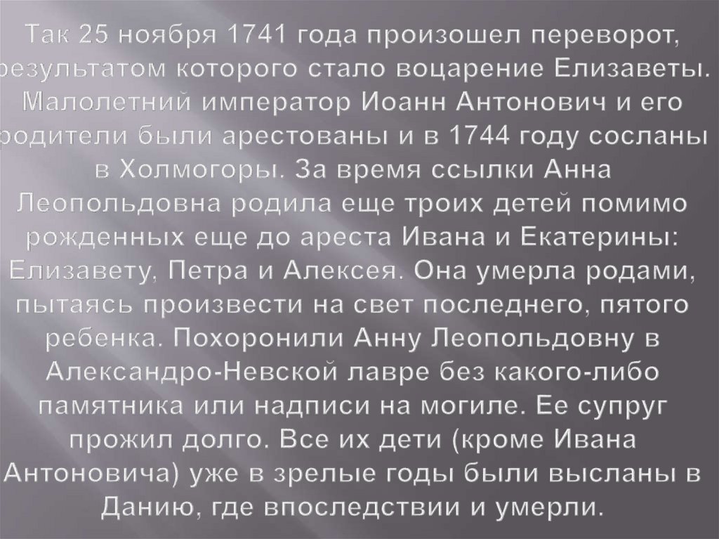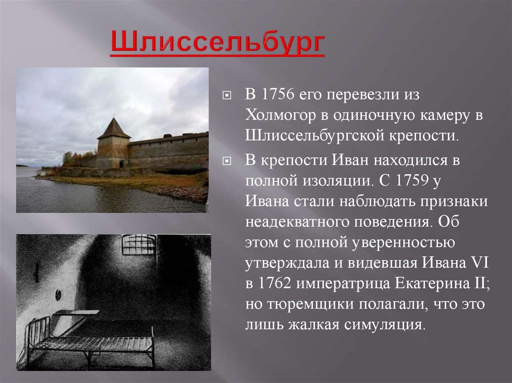 В 1756 его перевезли изХолмогор в одиночную камеру в