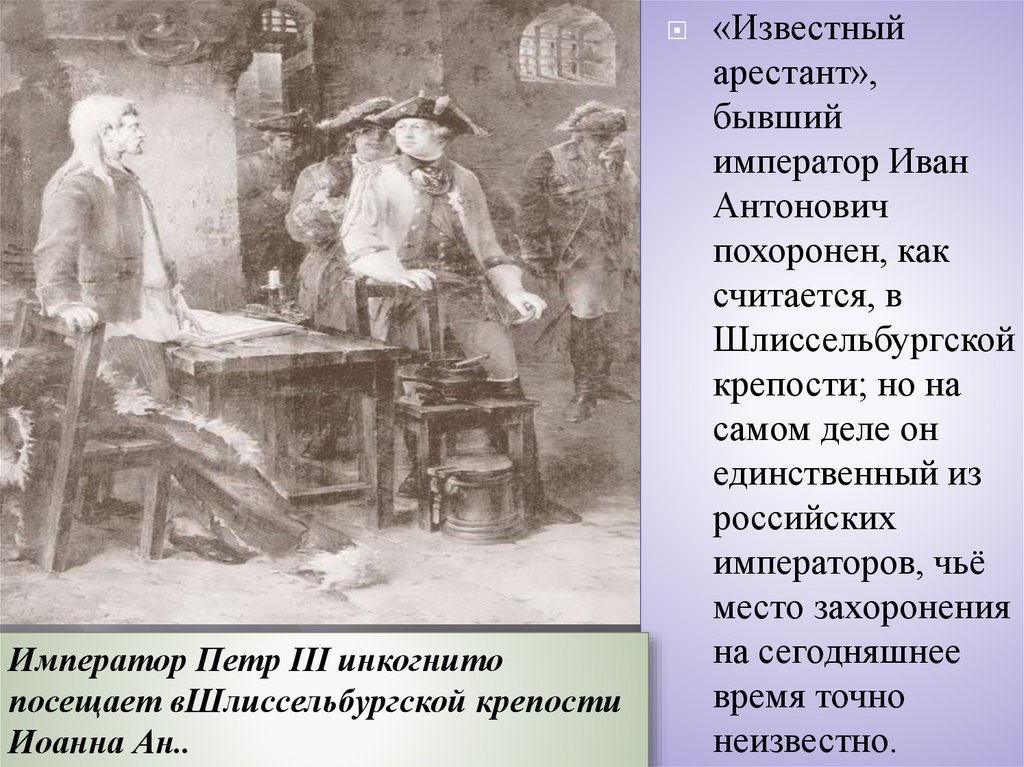 Император Петр III инкогнитопосещает вШлиссельбургской крепости