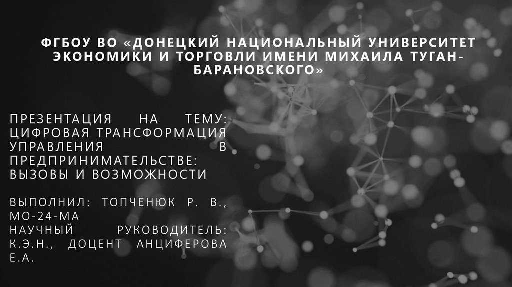 ФГБОУ ВО « ДОНЕЦКИЙ НАЦИОНА ЛЬНЫЙ УНИВЕРСИТЕТЭ КО Н О М И К И И ТО Р Г О В Л И И М Е Н И М И Х А И Л А Т У ГА Н Б А РА Н О В С КО Г О »
