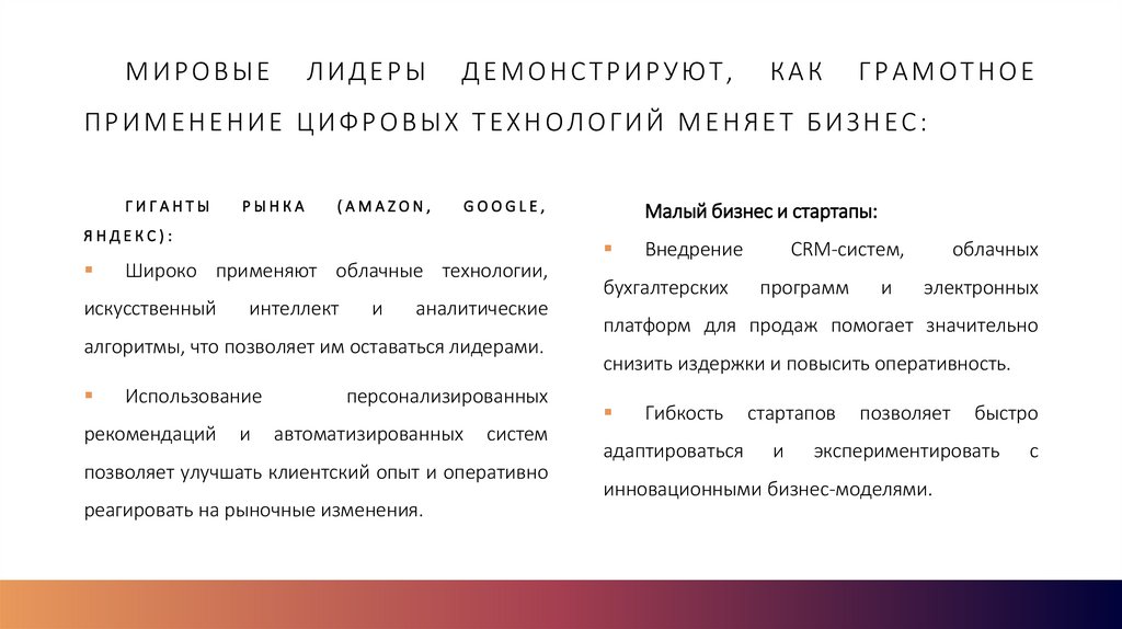 ПРИМЕНЕНИЕ ЦИФРОВЫХ ТЕХНОЛОГИЙ МЕНЯЕТ БИЗНЕС: