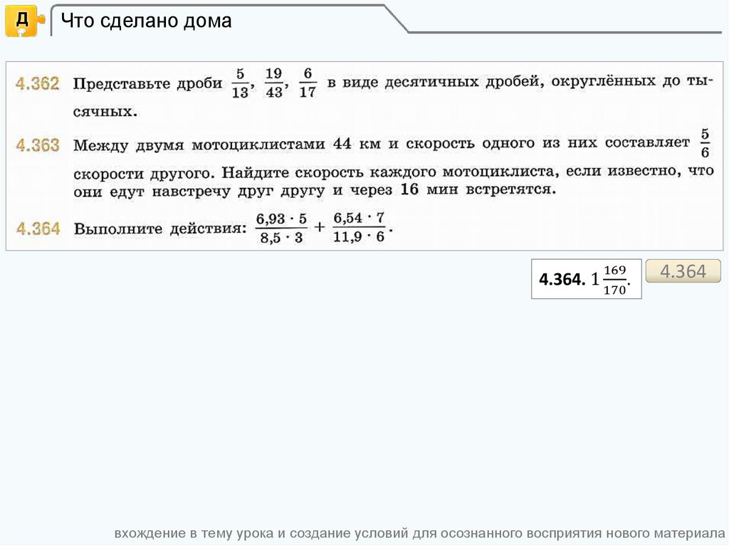вхождение в тему урока и создание условий для осознанного восприятия нового материала