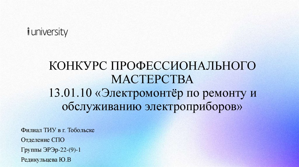 Конкурс профессионального мастерства 13.01.10 «Электромонтёр по ремонту и обслуживанию электроприборов»