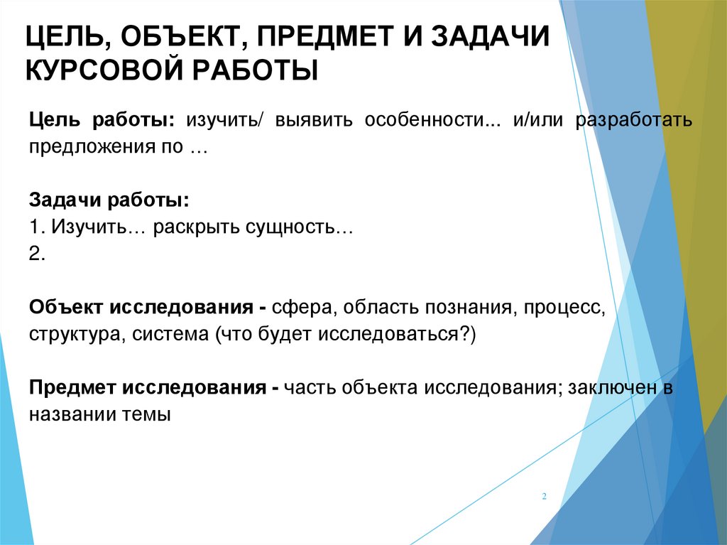ЦЕЛЬ, ОБЪЕКТ, ПРЕДМЕТ И ЗАДАЧИКУРСОВОЙ РАБОТЫ