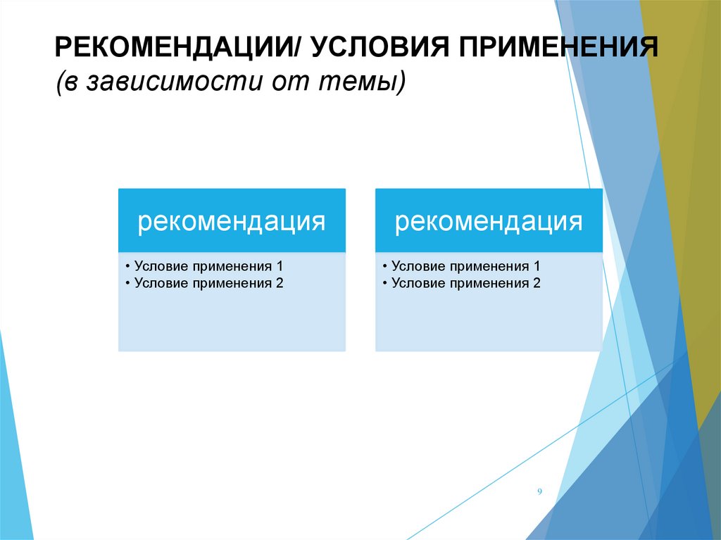 РЕКОМЕНДАЦИИ/ УСЛОВИЯ ПРИМЕНЕНИЯ(в зависимости от темы)