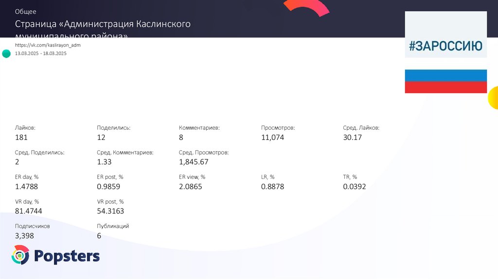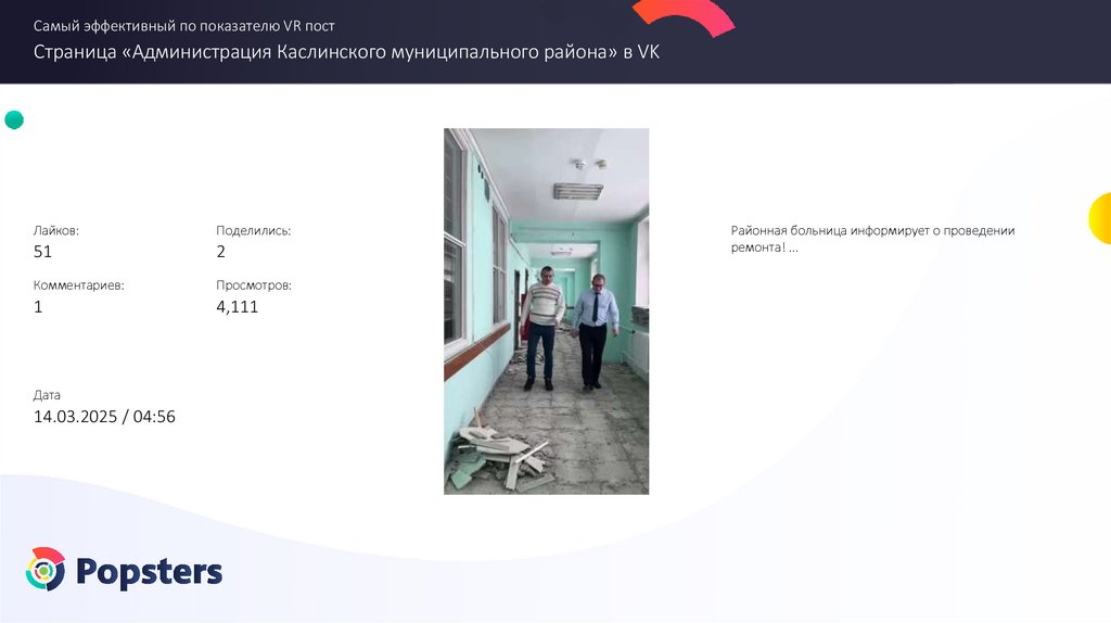 Самый эффективный по показателю VR постСтраница «Администрация Каслинского муниципального района» в VK