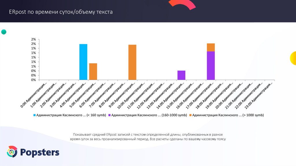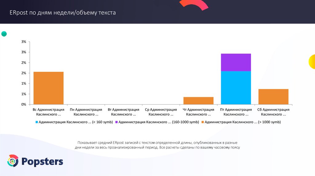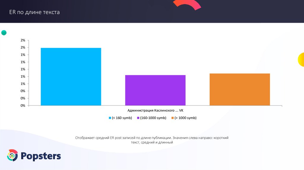 Отображает средний ER post записей по длине публикации. Значения слева направо: короткий