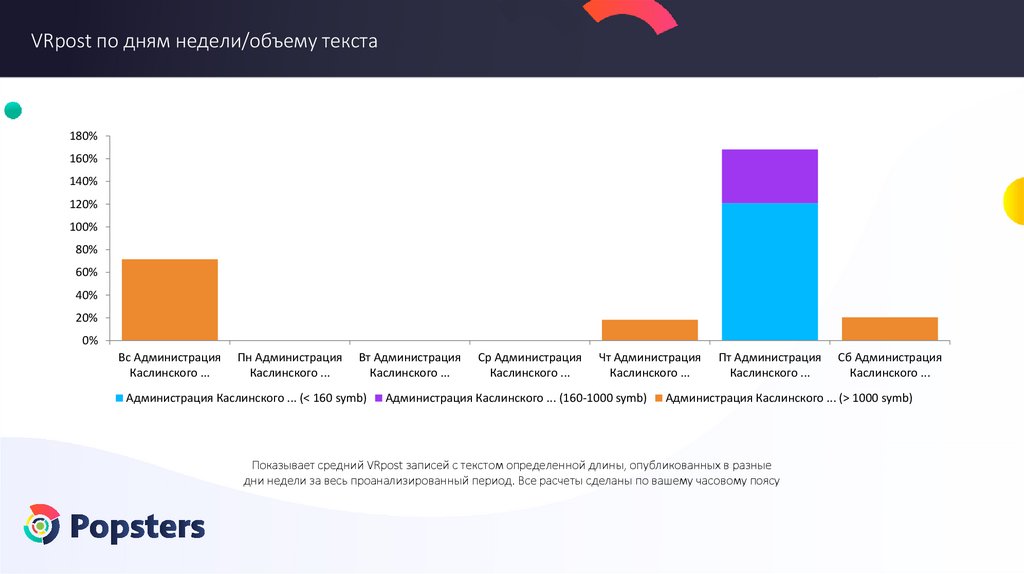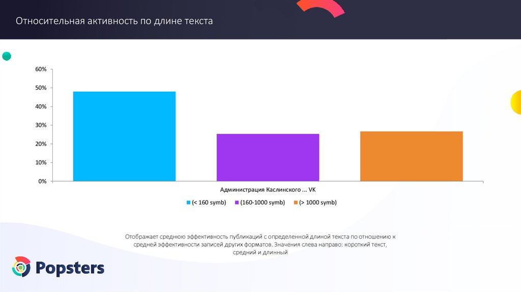Отображает средний VR post записей по длине публикации. Значения слева направо: короткий