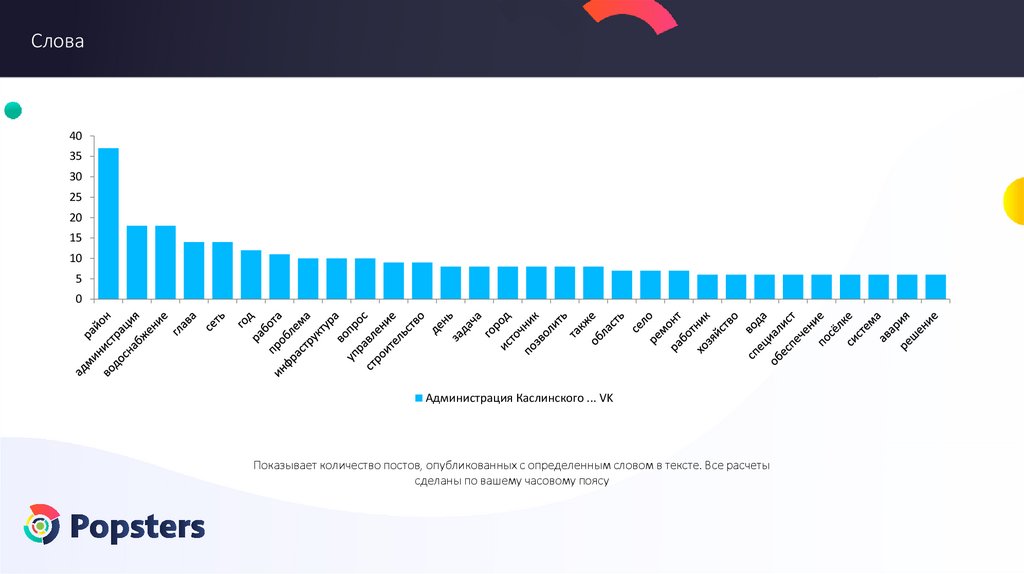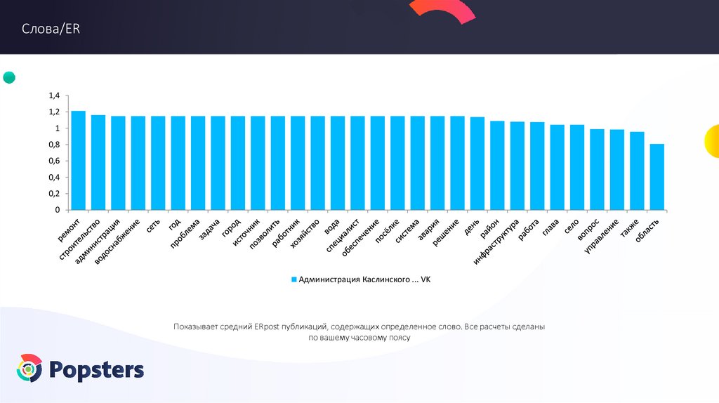 Показывает средний ERpost публикаций, содержащих определенное слово. Все расчеты сделаны
