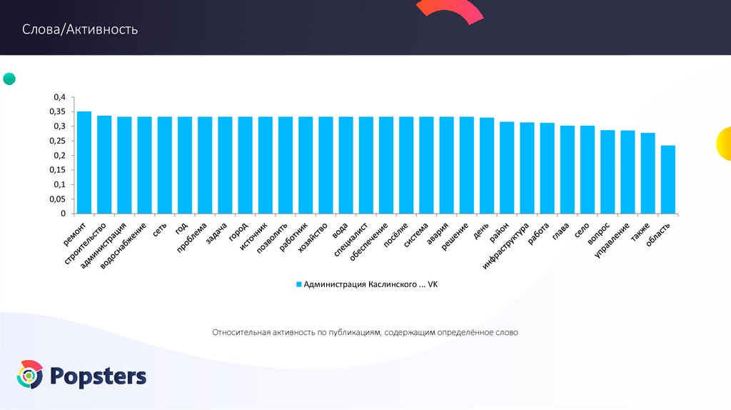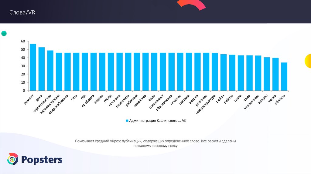 Показывает средний VRpost публикаций, содержащих определенное слово. Все расчеты сделаны