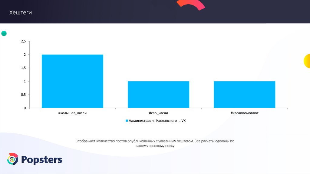 Отображает количество постов опубликованных с указанным хештегом. Все расчеты сделаны по