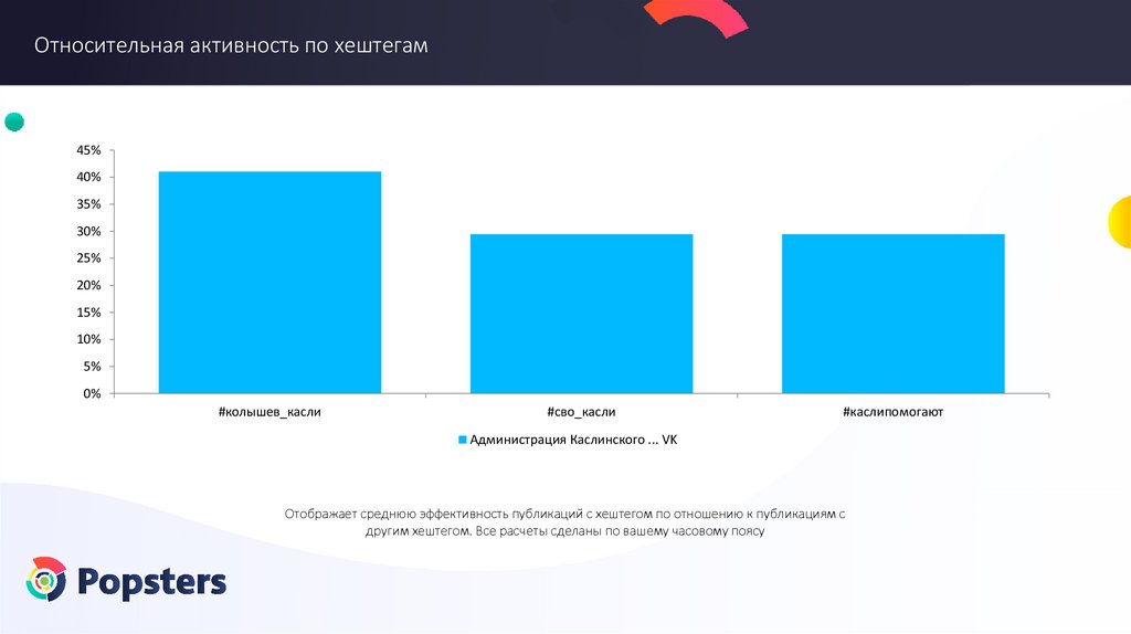 Отображает среднюю эффективность публикаций с хештегом по отношению к публикациям с