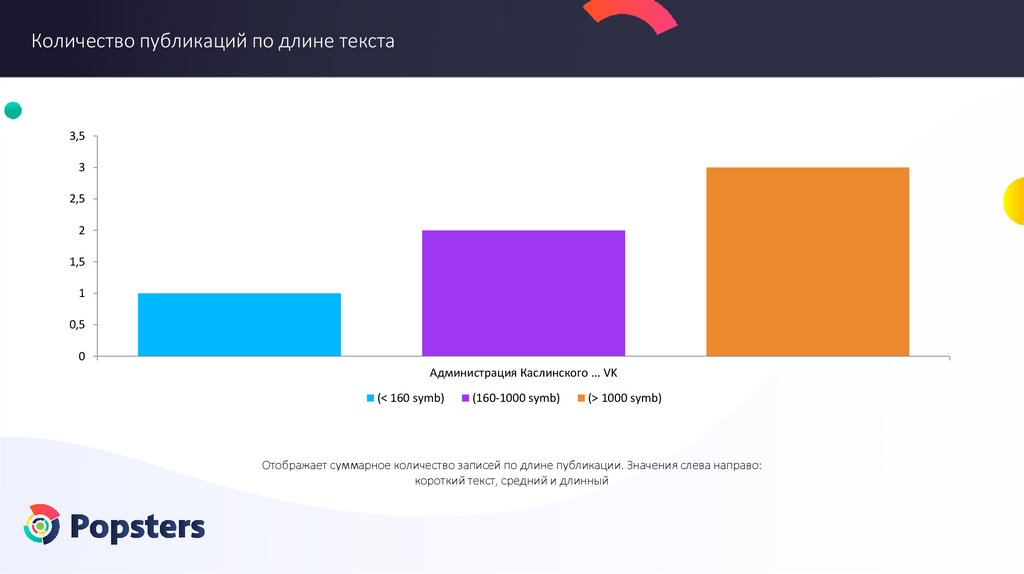 Отображает суммарное количество записей по длине публикации. Значения слева направо: