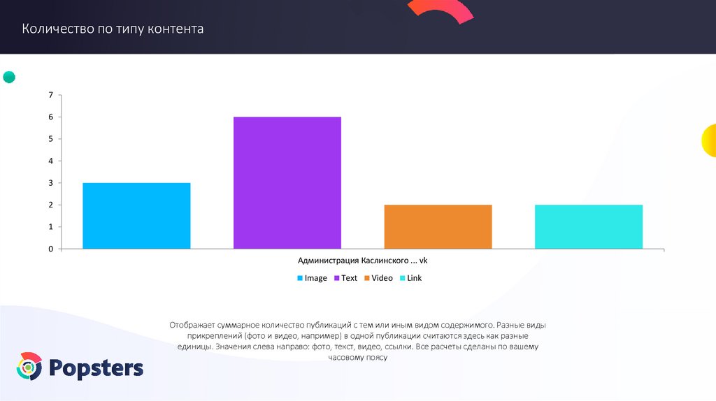 Отображает суммарное количество публикаций с тем или иным видом содержимого. Разные виды