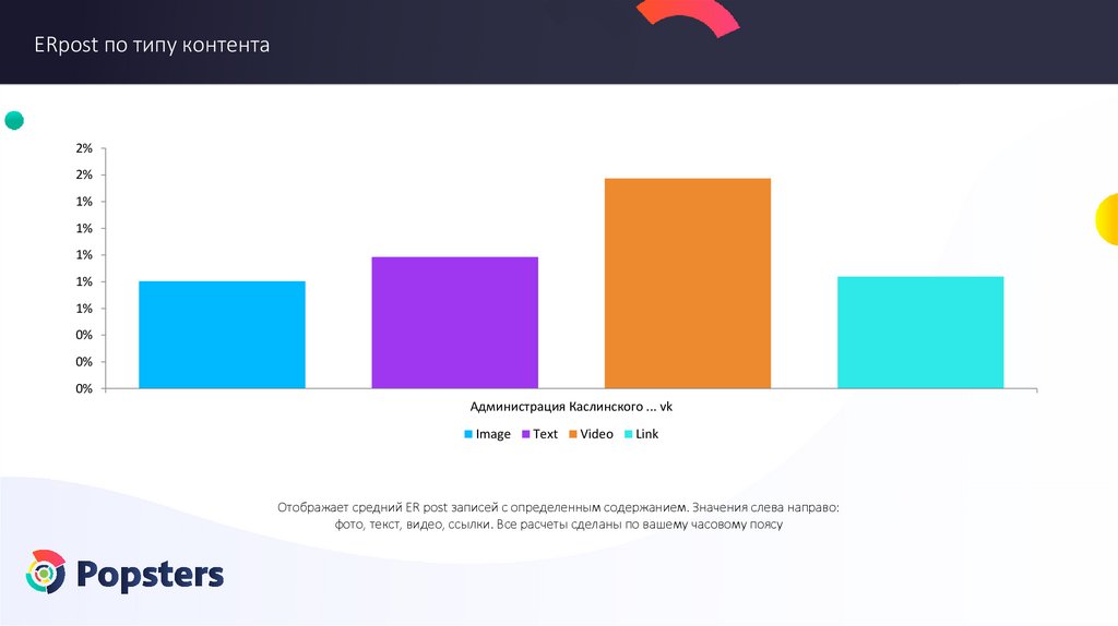 Отображает средний ER post записей с определенным содержанием. Значения слева направо: