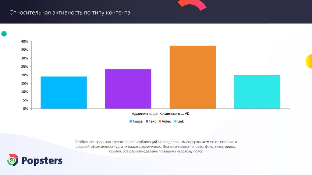 средней эффективности других видов содержимого. Значения слева направо: фото, текст, видео,