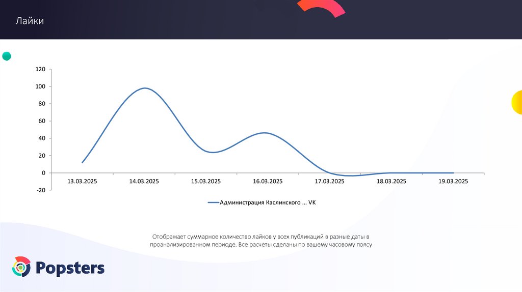 Отображает суммарное количество лайков у всех публикаций в разные даты в