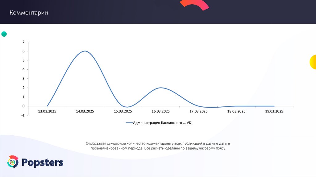 Отображает суммарное количество комментариев у всех публикаций в разные даты в