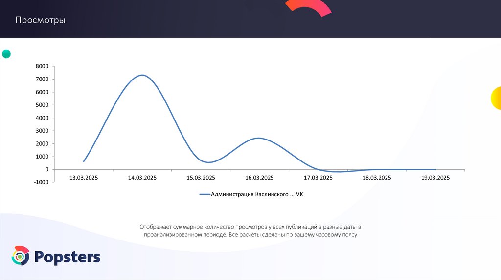 Отображает суммарное количество просмотров у всех публикаций в разные даты в