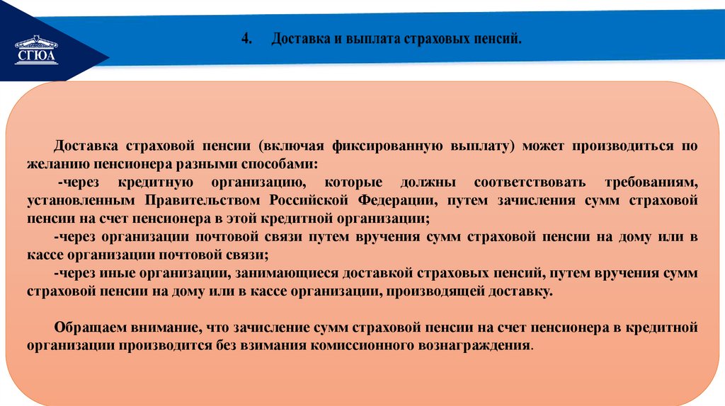 -через иные организации, занимающиеся доставкой страховых пенсий, путем вручения сумм