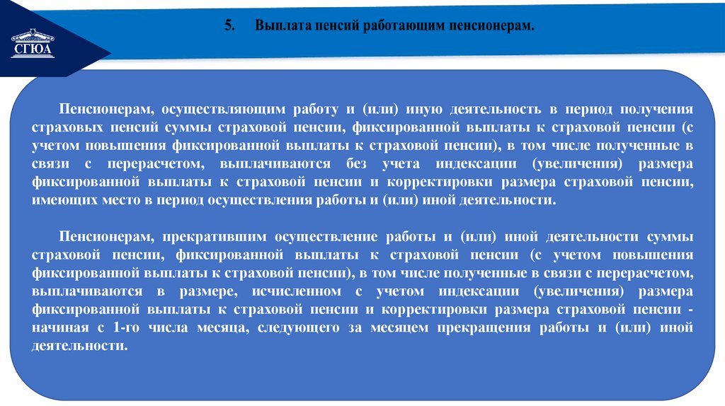 Пенсионерам, осуществляющим работу и (или) иную деятельность в период получениястраховых пенсий суммы страховой пенсии, фиксированной выплаты к страховой пенсии (с