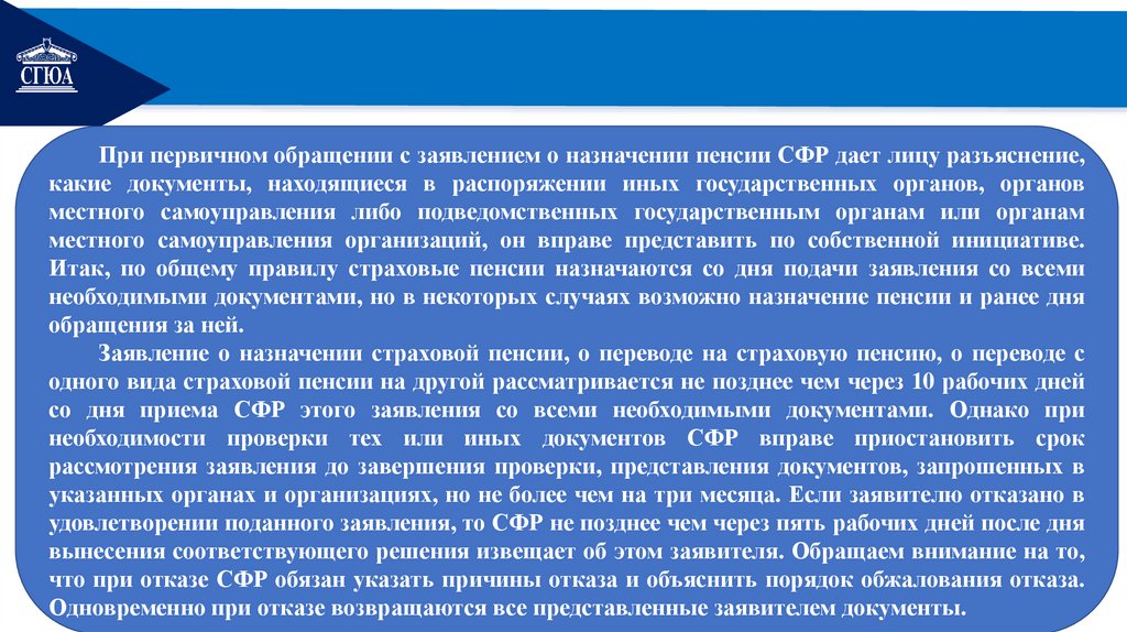 со дня приема СФР этого заявления со всеми необходимыми документами. Однако при