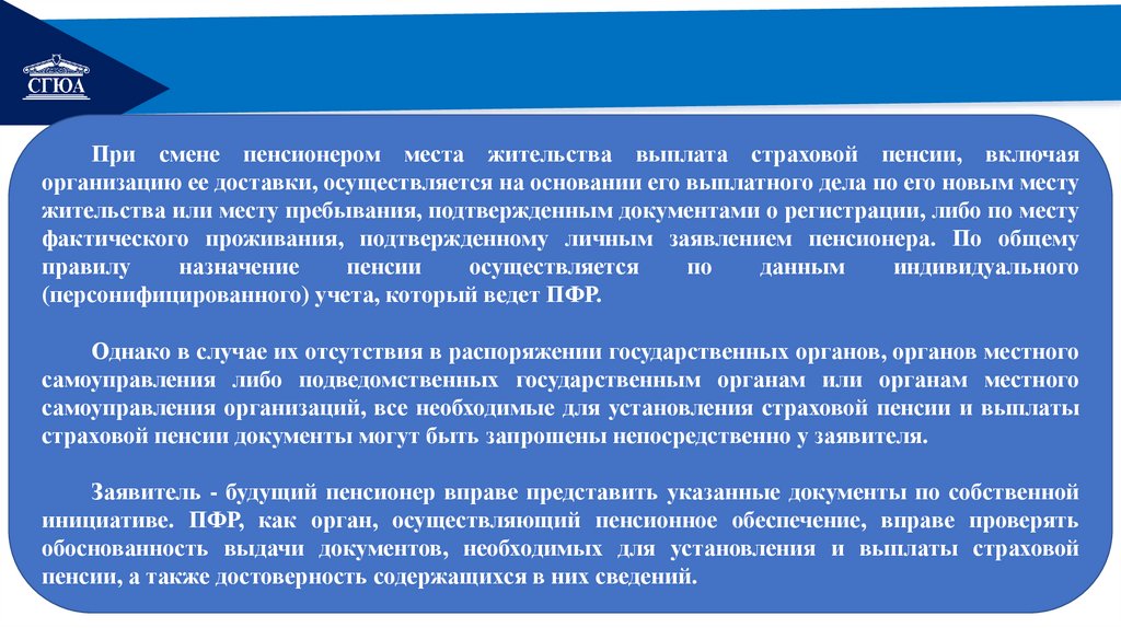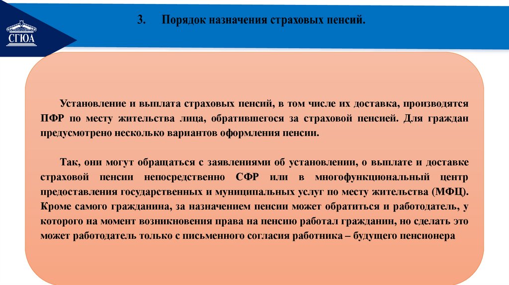 страховой пенсии непосредственно СФР или в многофункциональный центр