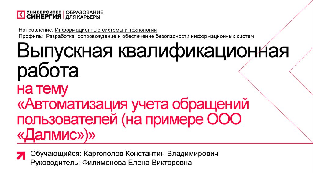 Направление: Информационные системы и технологииПрофиль: Разработка, сопровождение и обеспечение безопасности информационных систем