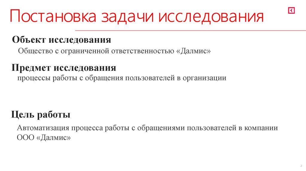 Автоматизация учета обращений пользователей (на примере ООО «Далмис»)