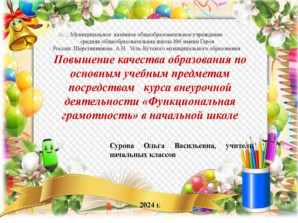 Муниципальное казённое общеобразовательное учреждениесредняя общеобразовательная школа №6 имени Героя