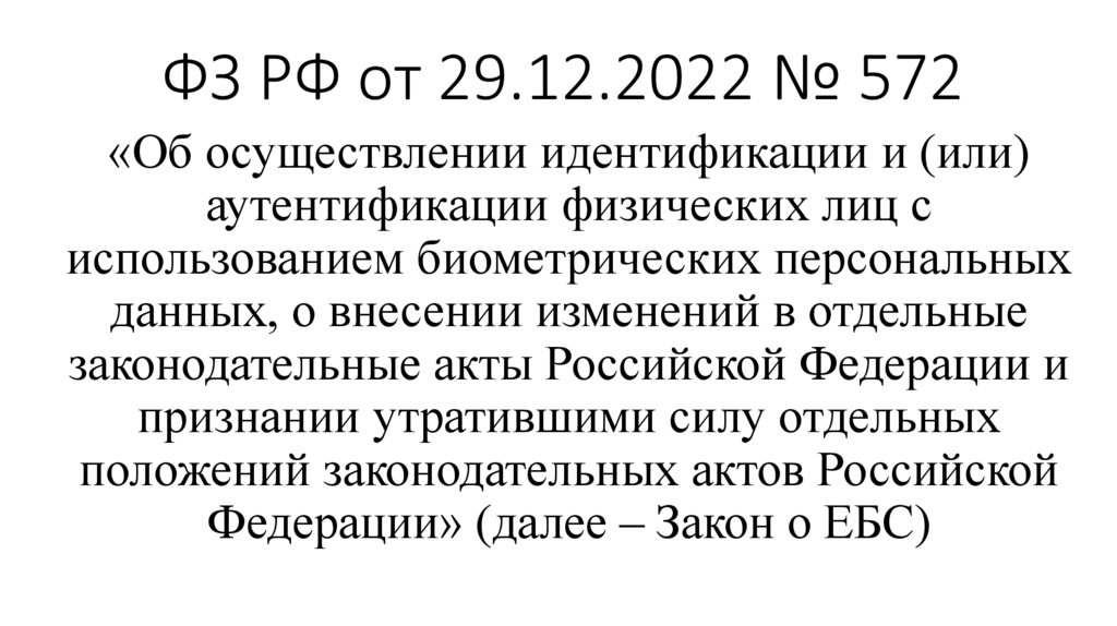 ФЗ РФ от 29.12.2022 № 572«Об осуществлении идентификации и (или)