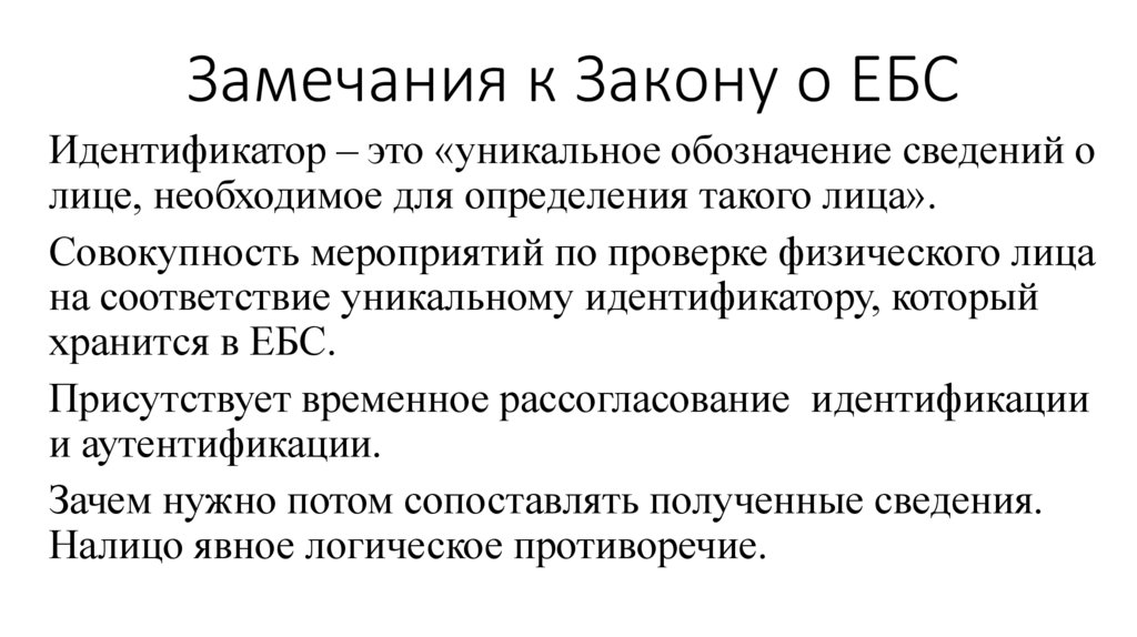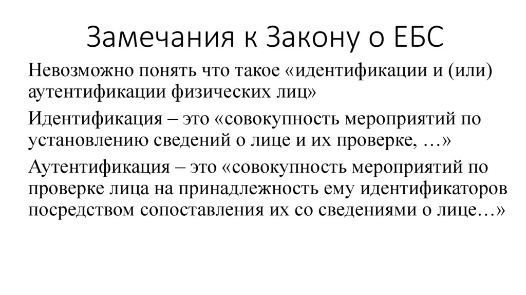 Замечания к Закону о ЕБСНевозможно понять что такое «идентификации и (или)