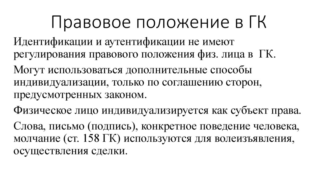 Правовое положение в ГКИдентификации и аутентификации не имеют