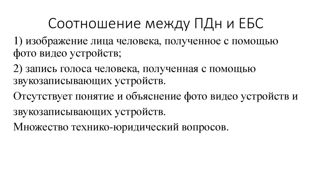 Соотношение между ПДн и ЕБС1) изображение лица человека, полученное с помощью