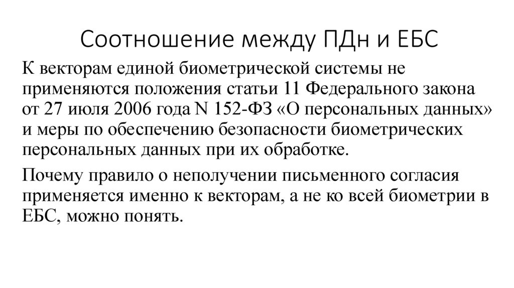 Соотношение между ПДн и ЕБСК векторам единой биометрической системы не