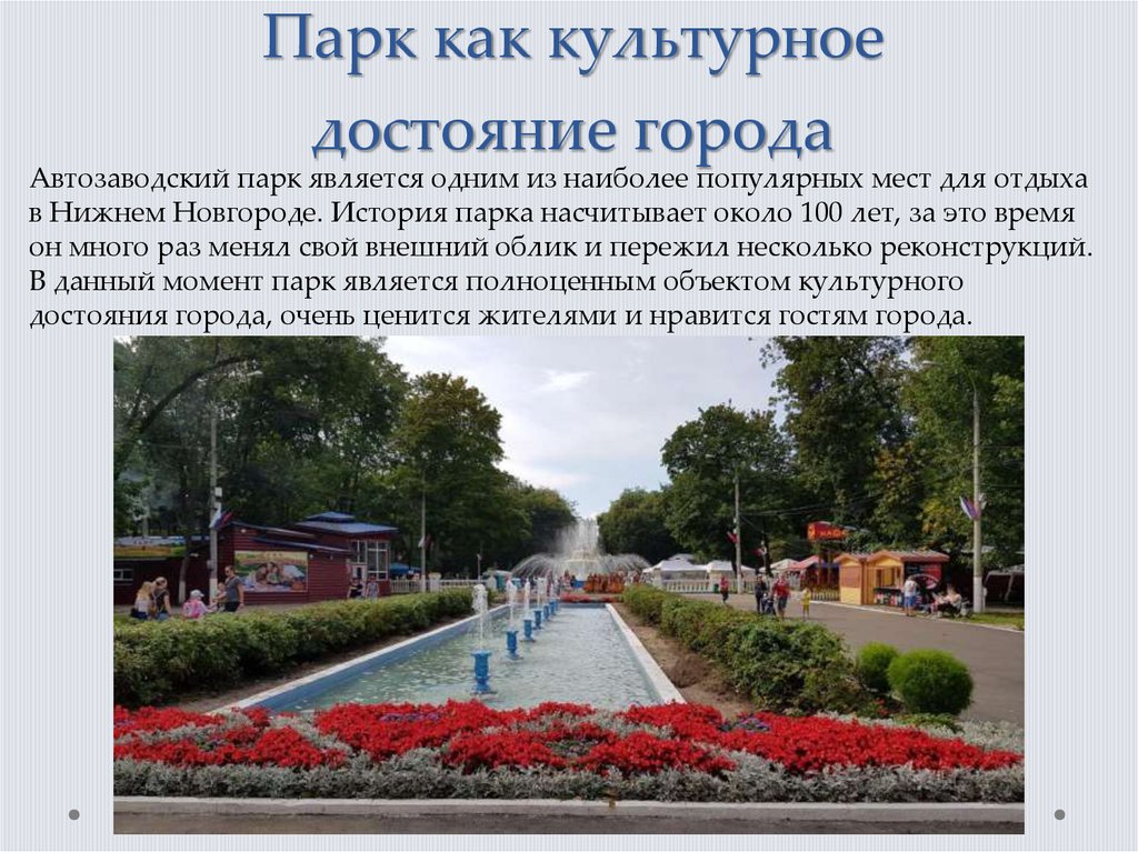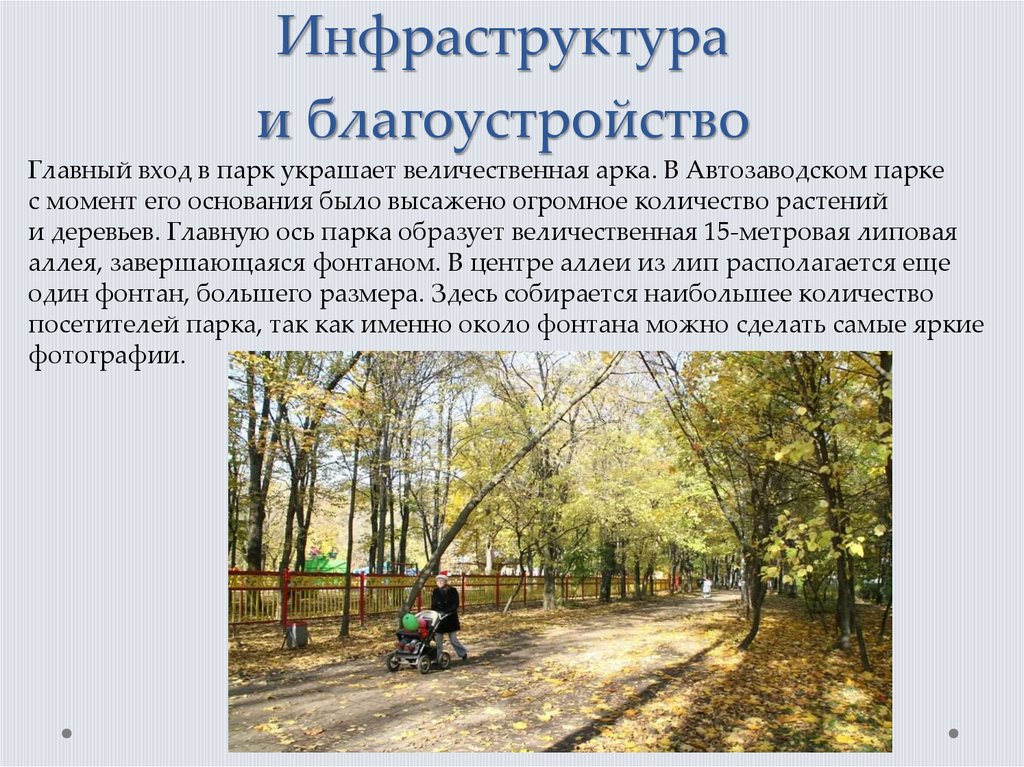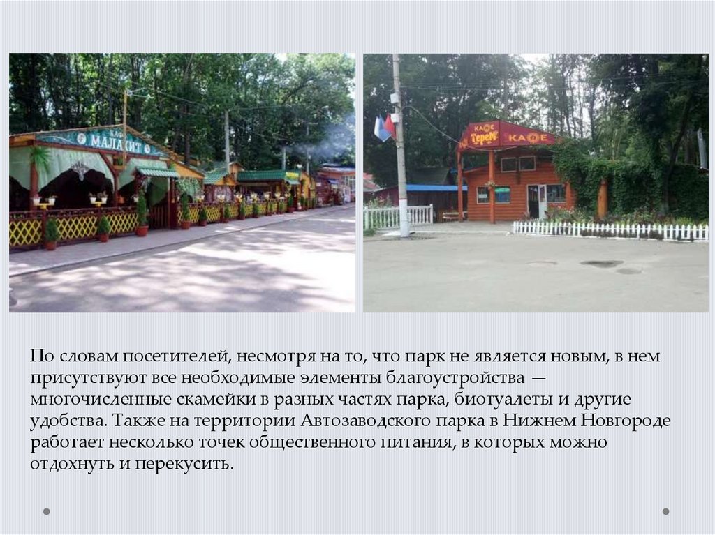 удобства. Также на территории Автозаводского парка в Нижнем Новгороде
