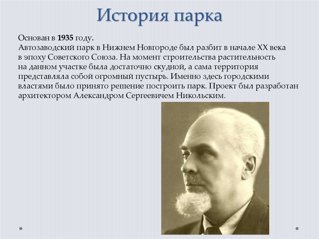 в Нижнем Новгороде. История парка насчитывает около 100 лет, за это время