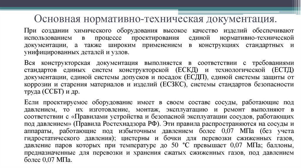 Основная нормативно-техническая документация.При создании химического оборудования высокое качество изделий обеспечивают