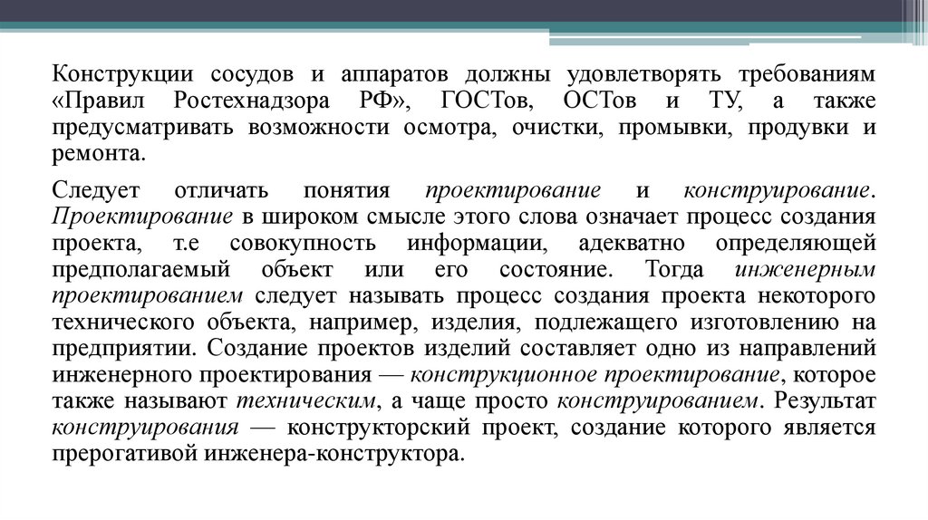 Конструкции сосудов и аппаратов должны удовлетворять требованиям«Правил Ростехнадзора РФ», ГОСТов, ОСТов и ТУ, а также