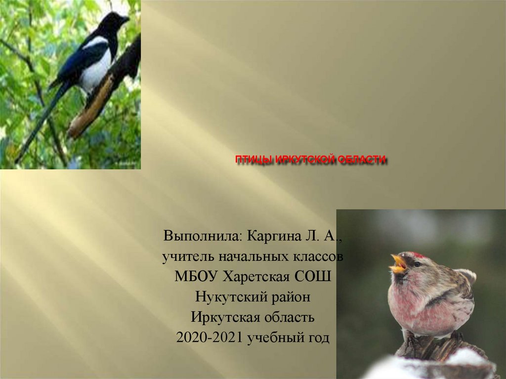 ПТИЦЫ ИРКУТСКОЙ ОБЛАСТИВыполнила: Каргина Л. А.,