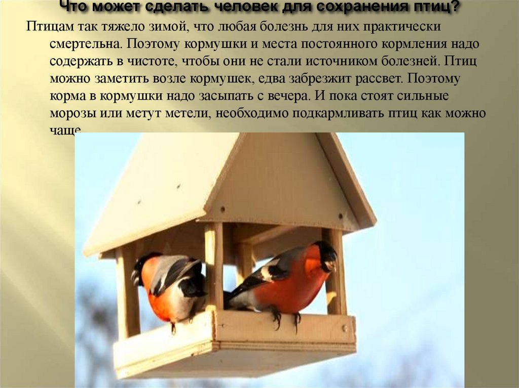 Что может сделать человек для сохранения птиц?Птицам так тяжело зимой, что любая болезнь для них практически